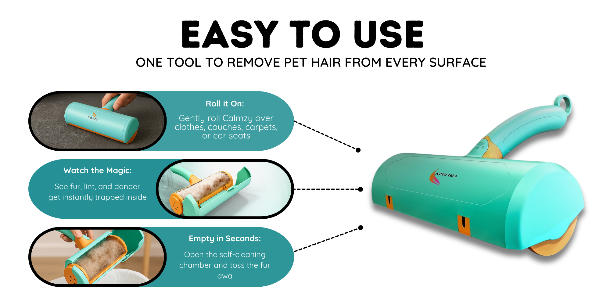 CALMZY isn’t just a tool it’s freedom from fur covered clothes, ruined furniture, and endless cleaning.